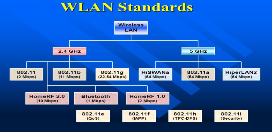 IEEE 802.11 is the standard protocol for wireless local area networks that make it possible to connect securely to high-speed wireless networks while still having mobile access to network infrastructure. Before the advent of this technology, we needed to be connected with cables to the LAN to enjoy the benefits of a fast connection speed while using a network. Several WLAN standards and modes have been designed throughout time by multiple organizations in the business world. The following diagram illustrates many of the most popular WLAN modes and standards. 802.11 was first developed in 1997, and after that various updates are developed as per the requirements.